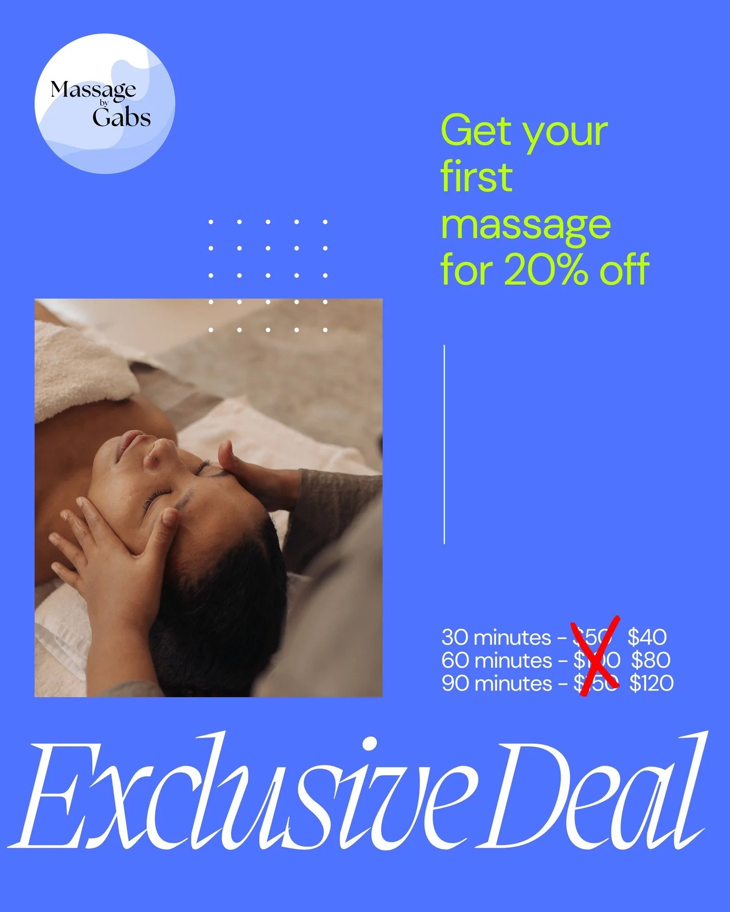 Use code 20-OFF, for 20% off your first massage!